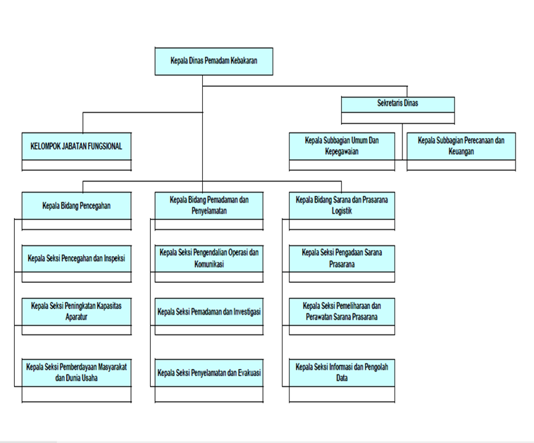Berdasarkan Peraturan Perangkat Daerah Kabupaten Seram Bagian Timur No.4 Tahun 2021 tentang Perubahan Kedua atas Peraturan Daerah No.7 Tahun 2016 tentang Pembentukan dan Susunan Perangkat Daerah, serta Peraturan Buapti Seram Bagian Timur No.4 tahun 2024 tentang Kedudukan, susunan Organisasi, tugas dan fungsi serta kerja Dinas Daerah, maka Dinas Pemadam Kebakaran memiliki Struktur organisasi sebagai berikut.